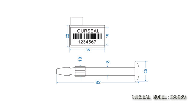 Model Number: OS8089 Seal Classification []High Security Seal []Load to Failure >1850kgs (4081lbs) []Compliant with ISO17712 Material []Metal:A3 Steel []Plastic:ABS |