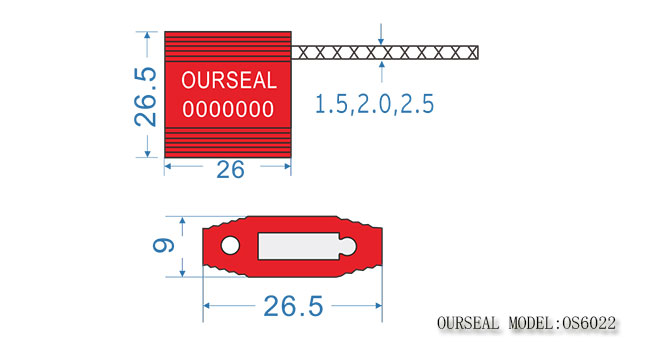 Model Number: OS6022 Seal Classification []Security Seal []Load to Failure >280kgs []Compliant with ISO17712 |