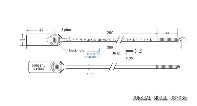 Model Number: OS7035 Seal Classification []Indicative Seal []Load to Failure >48kgs []Compliant with ISO17712 |